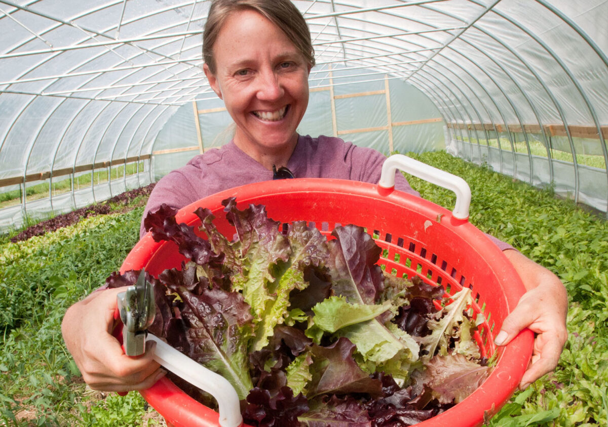 Above, Amy’s Organic Garden owner Amy Hicks harvests greens at her farm in Charles City, Virginia. Photo: USDA/Lance Cheung