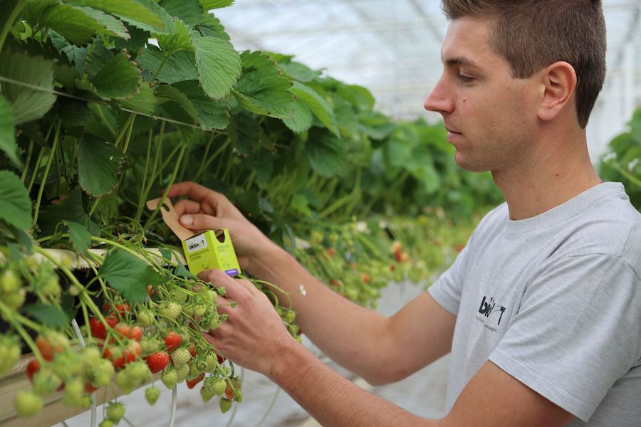 The updated packaging from Biobest includes a yellow sugar strip intended to provide a food source for newly emerged adult midges. This can support adult lifespan, mobility and reproduction, which may contribute to faster establishment in specialty crops.