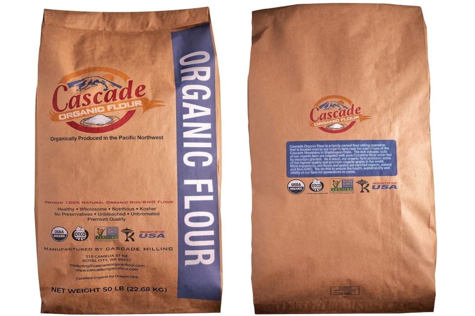 The new 50 lb. bags will be used to distribute several of Cascade’s organic flours including: Organic Whole Wheat Flour, Organic Sprouted Flour, Organic Bread Flour, Organic Whole Grain All-Purpose Flour, Organic Rye Flour and Organic Corn Flour.