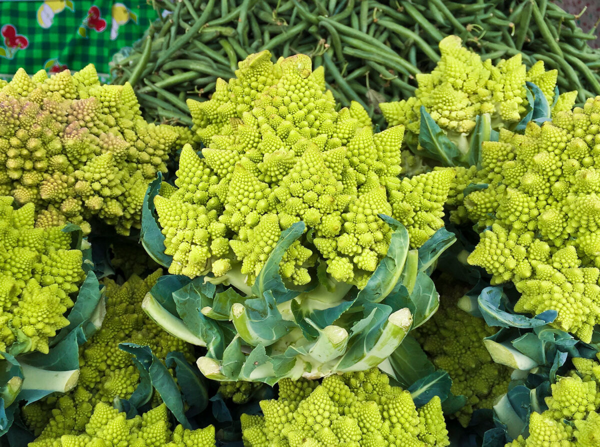At top, Romanesco broccoli and beans at the Jack London Square Farmers’ Market in Oakland, California. Photo: USDA/Lance Cheung.