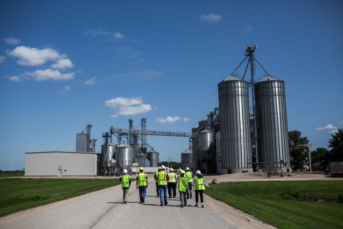 Above, a group of Pipeline’s team members doing a tour of its grain storage and processing facility in Hope, Minnesota, with Commissioner of Minnesota Department of Agriculture Thom Peterson. Pipeline’s development of its fraud prevention plan and its completion in its enrollment of Organic Fraud Prevention Solutions was a company-wide effort and commitment. Photo: OTA